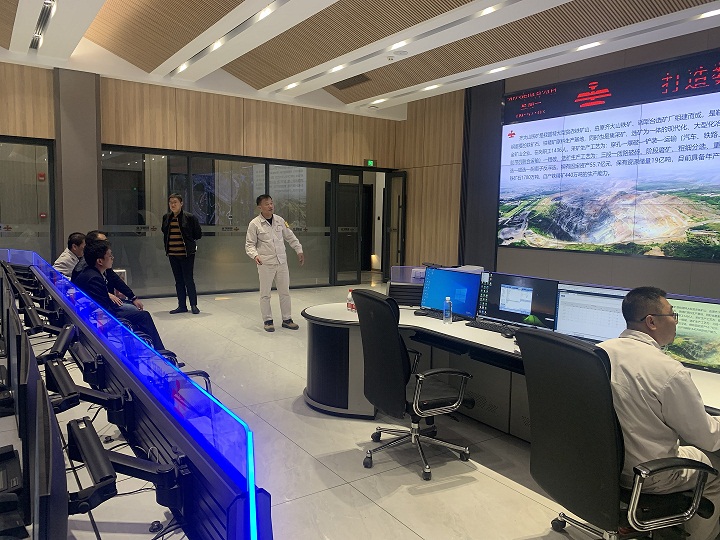 在鞍钢矿院副总经理陈洪彬陪同下,徐晓华一行参观了齐大山铁矿智慧采矿控制中心和关宝山矿业智慧选矿控制中心。齐大山铁矿和关宝山矿业领导亲自为徐晓华一行详细讲解智慧矿山(工厂)运行情况,徐晓华一行在深入了解智慧矿山(工厂)应用场景和智慧智造过程后,对鞍钢矿业智慧控制系统印象深刻,表示鞍钢矿业全流程智慧矿山(工厂)建设设计思路超前,运行效果令人欣慰,实现了矿山人多年来的梦想。